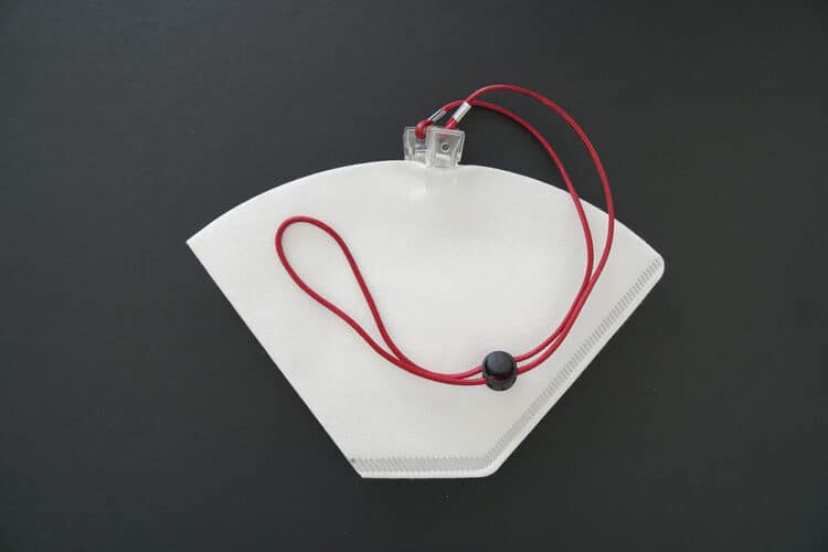 The result is a face mask, shaped like Melitta’s coffee filters, with good filtration, breathing, and wearing characteristics. It consists of a three-layer non-woven material and includes a melt-blown layer that meets the standard for surgical masks according to EN14683 with a Bacterial Filtration Efficiency (BFE) greater than 95 per cent. In the first stage of production, these masks are fastened with a clip or elastic bands.
