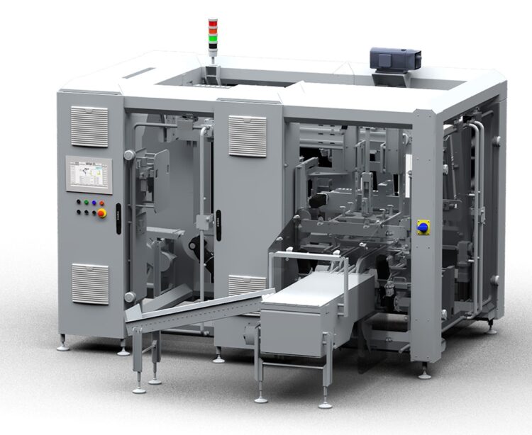 Main features include carton magazine ergonomics and improved machine visibility, independent carton transport frames, centrelining, TPM for format change, a cleaner design, and compact size, with a footprint of 3500 millimetres.