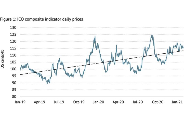 According to the International Coffee Organization (ICO) January market report, the ICO composite indicator continued to climb in January 2021, averaging 115.73 US cents per pound, 0.9 per cent higher than last month.