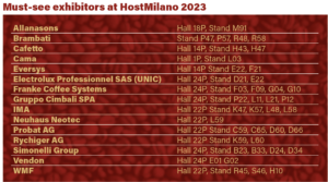 To date, some 1826 exhibitors are registered for HostMilano 2023, representing 40 per cent international from 50 countries. The United States is among the most represented non-European areas, alongside the traditional presence of European manufacturers including Italy, Germany, Spain, France, Switzerland, the Netherlands, the United Kingdom, as well as Turkey and China.