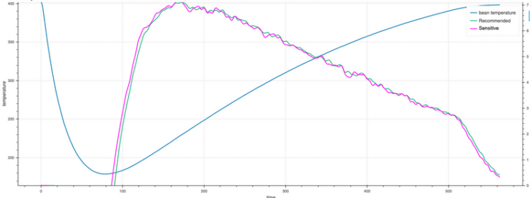 The sensitive setting has been designed for roasting environments with little to no noise (i.e. minimal interference). The result presents a nearly real-time and extremely detailed RoR information with minimal smoothing, which can remove detail.